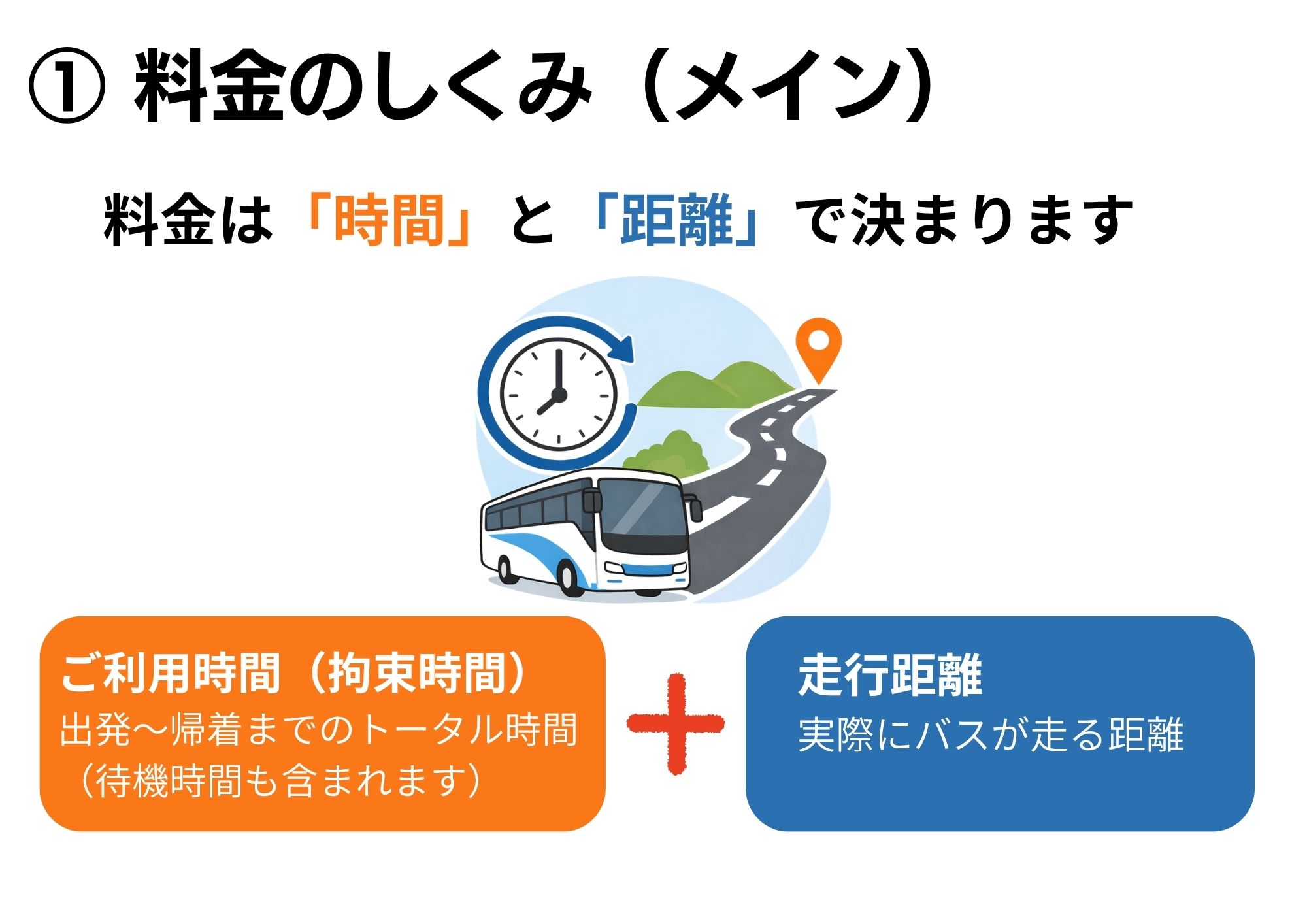 貸切バスの料金は、単純な距離だけではなく、いくつかの要素をもとに算出されています。